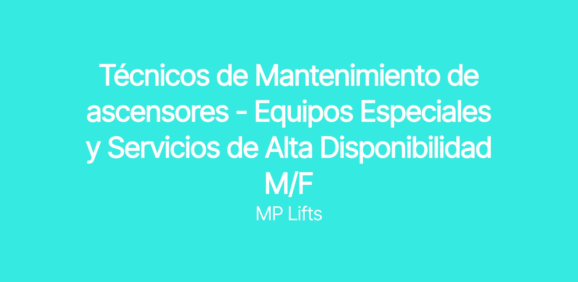 Técnicos de Mantenimiento de ascensores - Equipos Especiales y Servicios de Alta Disponibilidad M/F