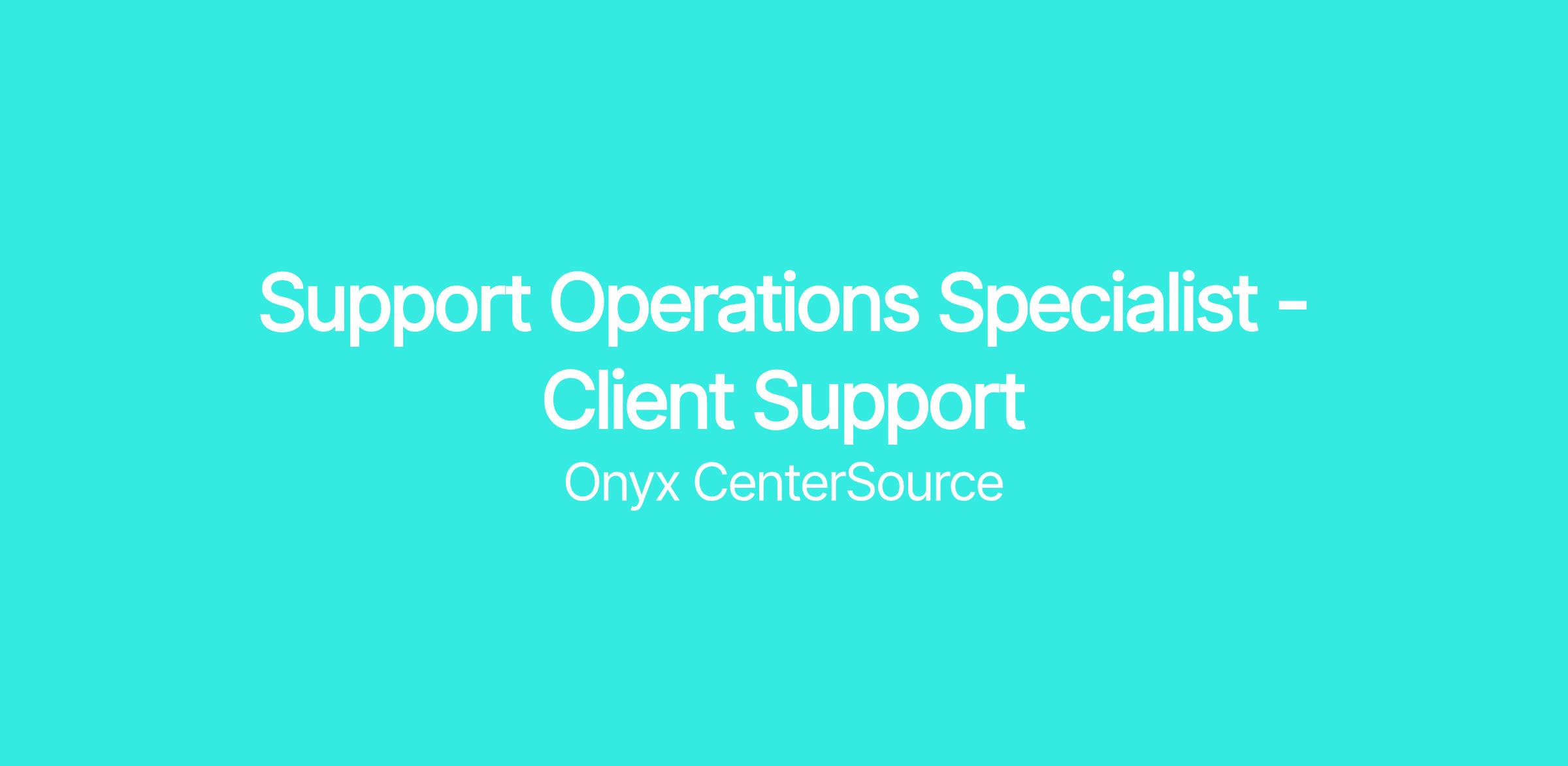 Overview | The Support Operations Specialist – Client Support is the primary contact and support for clients in their use of Onyx products. This role has accountability to the Manager of Support Operations and maintains close working relationships with Client Support teams and other Onyx stakeholders.The Support Operations Specialist is expected to perform all assigned activities which are accomplished per SOP and expectations. |